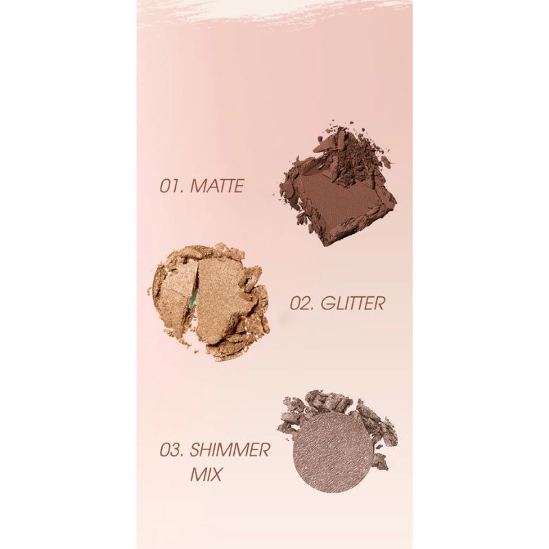 Bên cạnh đó, chất phấn mềm mịn, có độ bám tốt và lên màu chuẩn chỉ sau một lần chạm. Các gam màu được phối hợp khéo léo từ tông nude nhẹ nhàng đến nâu trầm cá tính, thích hợp dùng hằng ngày hoặc trang điểm dự tiệc. Ngoài dùng cho mắt, bạn còn có thể tận dụng để tạo hiệu ứng bọng mắt hoặc nhấn highlight vùng má, tăng thêm sự linh hoạt trong một sản phẩm nhỏ gọn nhưng đầy tiện ích.