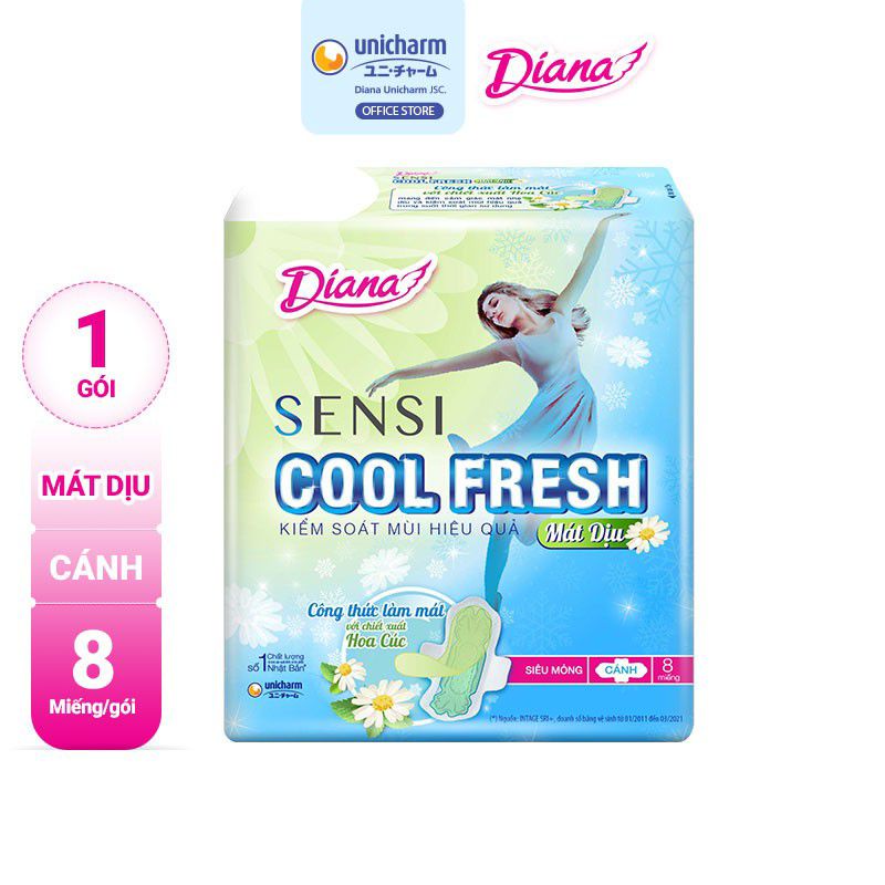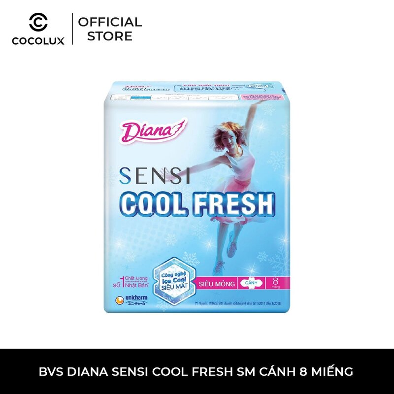 Băng Vệ Sinh Diana Sensi Cool Fresh Siêu Mỏng 23cm Cánh là sản phẩm thuộc dòng Cool Fresh mát lạnh đình đám, sở hữu chất liệu mềm mại, thấm hút cực tốt, là một phân loại bán chạy nhất trong các siêu thị và cửa hàng tạp hoá, cửa hàng tiện lợi.