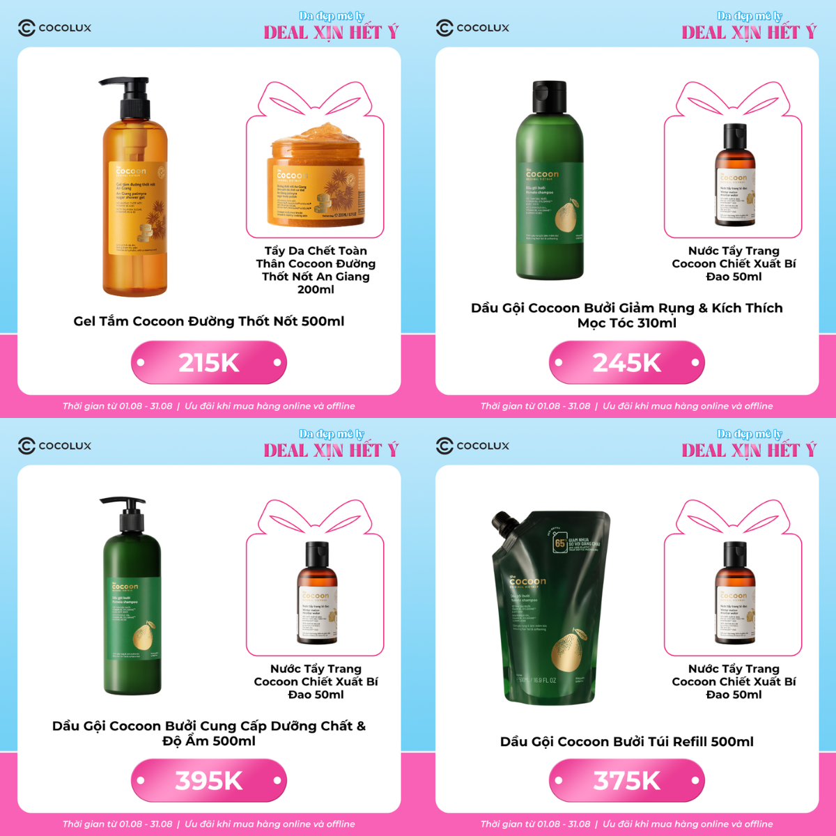 ✔️ BST gel tắm, dầu gội Cocoon chiết xuất từ thiên nhiên giá chỉ từ #215k, tặng thêm Deal Mua 1 tặng 1.