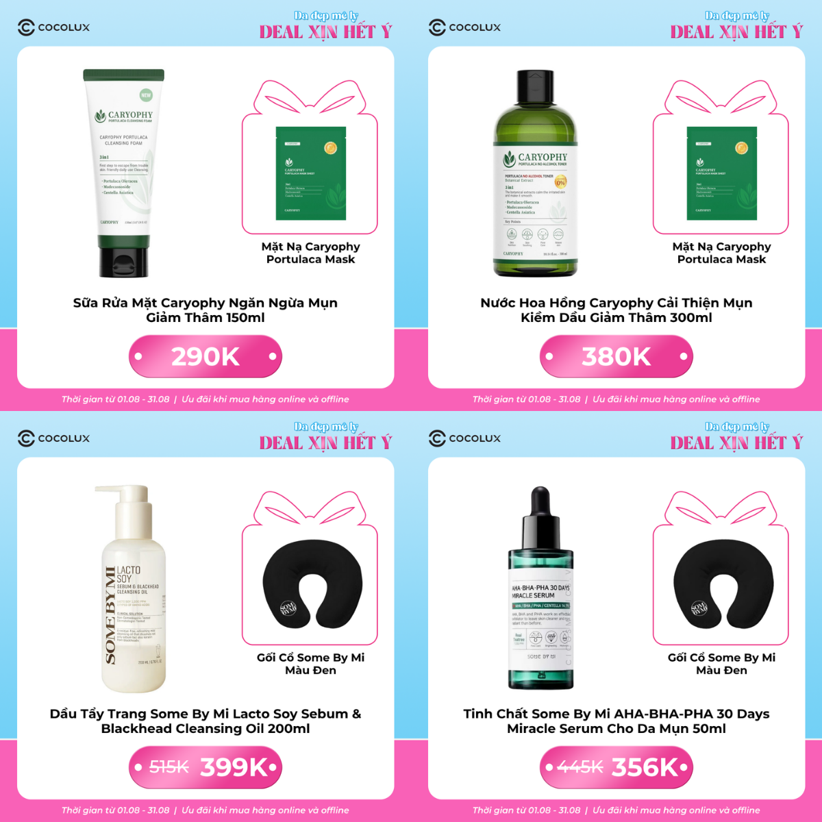 ✔️ Sữa rửa mặt và nước hoa hồng Caryophy, dầu tẩy trang và tinh chất Some by mi chỉ từ #290k, tặng thêm Deal Mua 1 tặng 1.