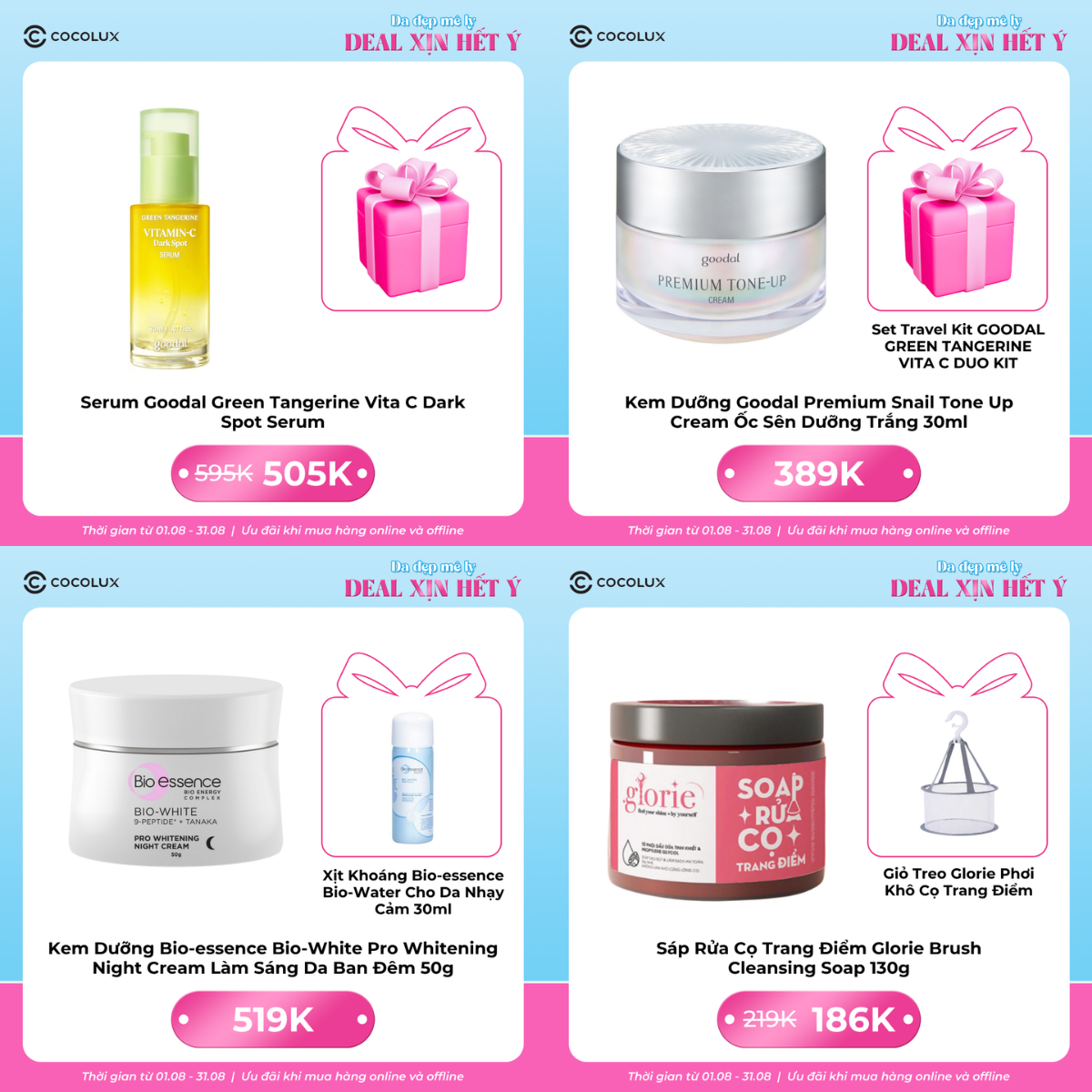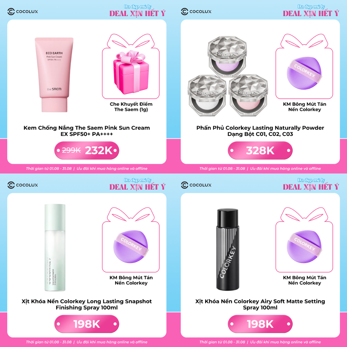 Tháng mới, tân trang nhan sắc và cùng bung xõa với diện mạo được “glow” mỗi ngày, không gì tuyệt vời hơn khi “va phải” ngay deal sâu đậm: từ phấn nước, che khuyết điểm, son môi, kem dưỡng da,... đến các sản phẩm chăm sóc tóc GIẢM tới #35% kết hợp deal chồng deal: