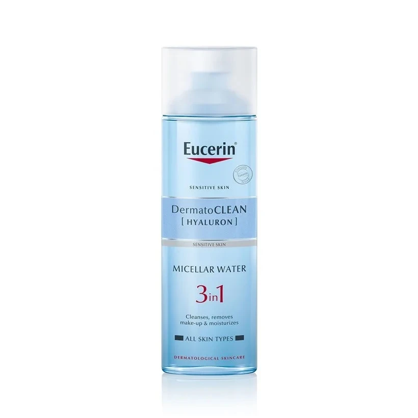 Eucerin DermatoCLEAN [HYALURON] Micellar Water 3 In 1 có kết cấu mỏng nhẹ, thấm nhanh vào da, giúp loại bỏ lớp trang điểm, ngay cả lớp trang điểm mắt và môi cứng đầu, ngoài ra còn có bụi bẩn, tạp chất trên da,... cho da thông thoáng, ngăn ngừa hiện tượng bít tắc lỗ chân lông. Sản phẩm có công thức dịu nhẹ, an toàn với mọi làn da, kể cả làn da nhạy cảm.