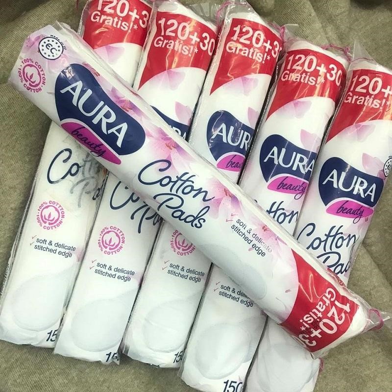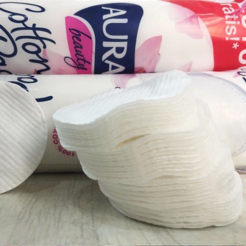 Bông Tẩy Trang Aura beauty 150 miếng là dòng tẩy trang không chỉ được yêu thích tại châu Âu mà tại Việt Nam cũng được rất nhiều người lựa chọn. Sản phẩm được làm từ 100% cotton thiên nhiên có đặc tính là dai và mềm mại nên khi sử dụng sẽ thấy da được làm sạch một cách siêu mềm mịn. Thiết kế độc đáo với 2 mặt bông, một mặt thiết kế dạng rãnh giúp làm sạch hiệu quả, một mặt trơn dùng để thấm toner/nước hoa hồng nhanh thấm vào da. Ngoài ra, vì được làm từ công nghệ hiện đại có lớp lưới màng mỏng nên có khả năng ngăn chặn không để lại xơ bông trên da sau mỗi lần sử dụng.