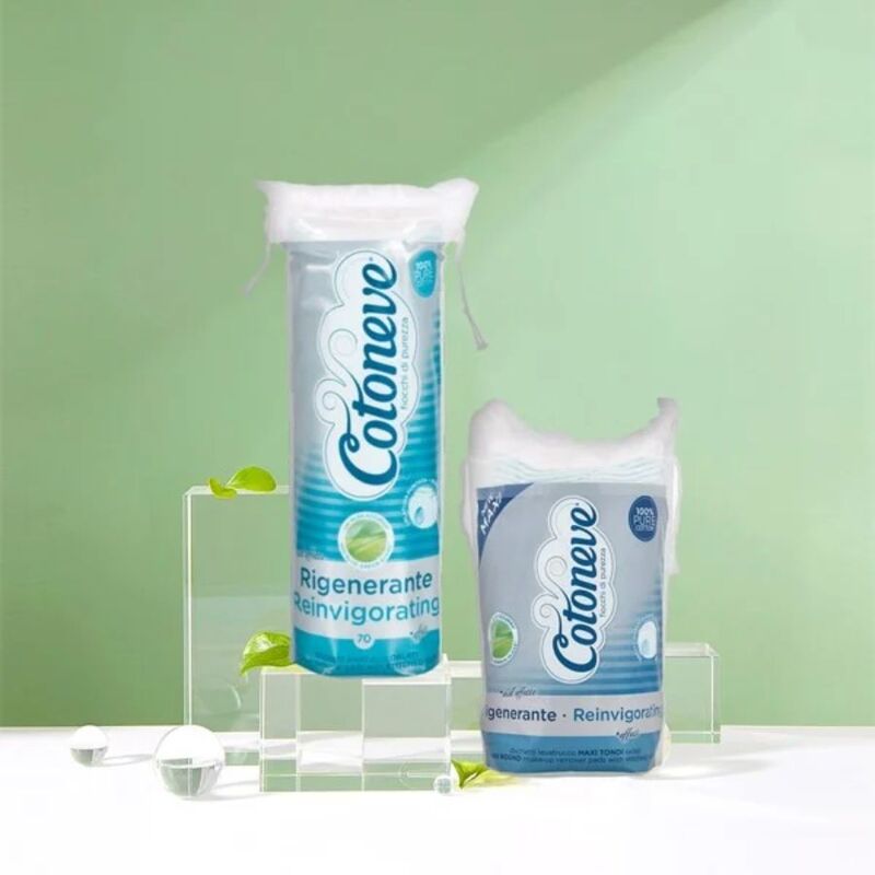 Bông tẩy trang Cotoneve có màu xanh dương và mang hương thơm nhẹ. Sản phẩm được tẩy trắng bằng công nghệ oxy hóa, góp phần bảo vệ môi trường và sức khỏe của người tiêu dùng.