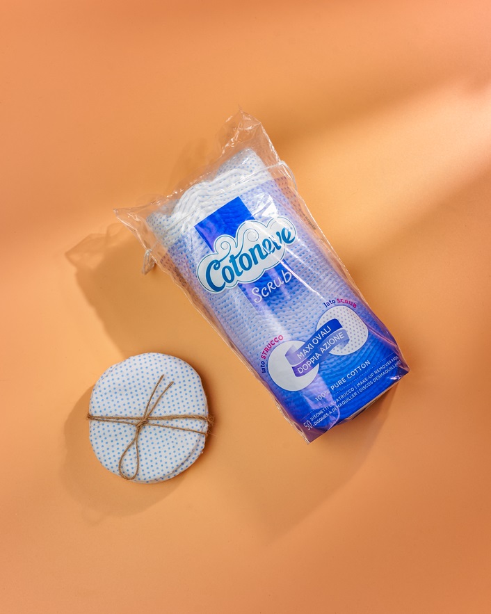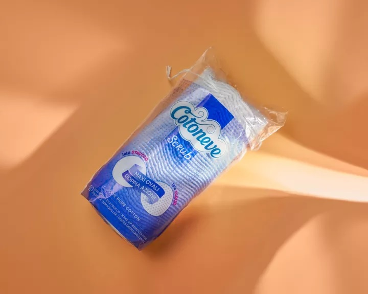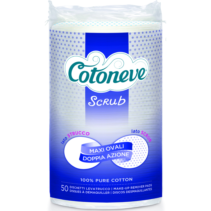 Cotoneve Scrub được thiết kế dạng oval to, size Maxi, gồm một mặt dạng hạt 3D tẩy da chết, một mặt mịn có khả năng thấm hút cao và hấp thụ tối ưu kem và dung dịch chăm sóc da. Sản phẩm sử dụng công nghệ oxygen, đã được kiểm nghiệm da liễu và kiểm soát vi sinh, an toàn với làn da. Bông tẩy trang Cotoneve gồm 50 miếng, được đựng trong túi có dây rút, giúp dễ dàng cất và bảo quản sản phẩm.