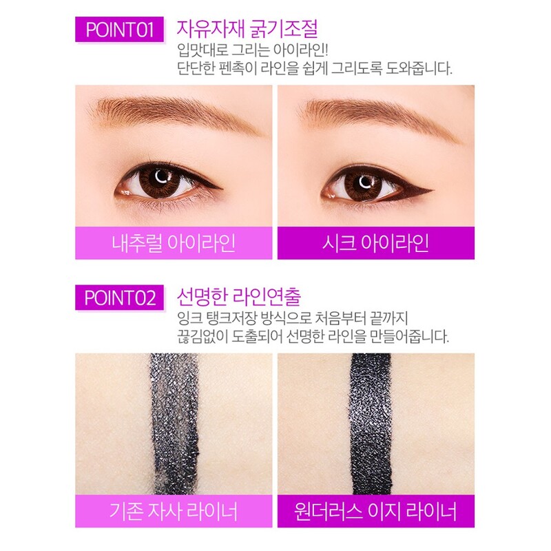 Thiết kế bút cũng khá chắc chắn, cầm vừa tay, nhỏ gọn có thể mang theo đi bất cứ đây. Nổi bật nhất là phần đầu kẻ được cải tiến siêu nhỏ tạo ra đường nét sắc nét, tự nhiên cho đôi mắt trở thành điểm nhấn tôn lên vẻ đẹp của bạn.