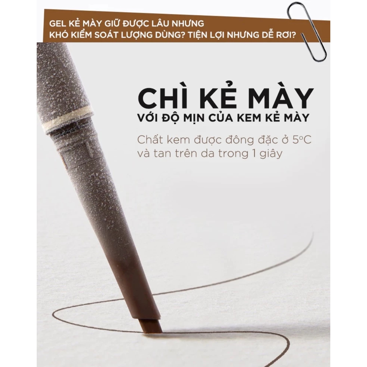 Thiết kế tiện lợi với đầu chì siêu mảnh cùng cọ chải đi kèm giúp bạn dễ dàng tán đều, tạo dáng mày tự nhiên và mềm mại. Đây là lựa chọn hoàn hảo cho những ai mong muốn có hàng lông mày gọn gàng, cân đối mà vẫn giữ vẻ đẹp nhẹ nhàng, tự nhiên.
