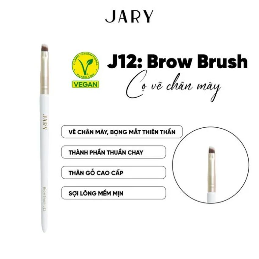 Jary - J12 Brow Brush phù hợp cho cả người mới bắt đầu. Cọ thích hợp cho các sản phẩm trang điểm dạng bột, như phấn, kem, gel, và bột tán chân mày. Sản phẩm có khả năng tán màu rất đều, giúp lông mày trở nên tự nhiên và che được các khuyết điểm xung quanh chân mày. Ngoài ra, cọ còn có thể dùng để kẻ viền mắt, viền mí hoặc viền môi.