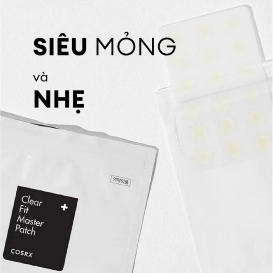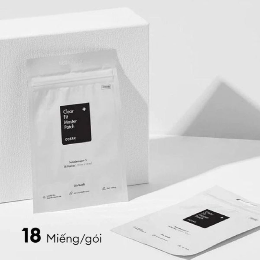 Miếng Dán Mụn Cosrx Clear Fit Master Patch (18 Miếng): Miếng dán mụn siêu mỏng với công nghệ Hydrocolloid giúp hút dịch mủ, giảm sưng viêm và hỗ trợ làm lành mụn nhanh chóng. Thiết kế mờ nhẹ, ôm sát da, gần như vô hình kể cả khi trang điểm. Không chứa thành phần gây kích ứng, an toàn cho da mụn và nhạy cảm.