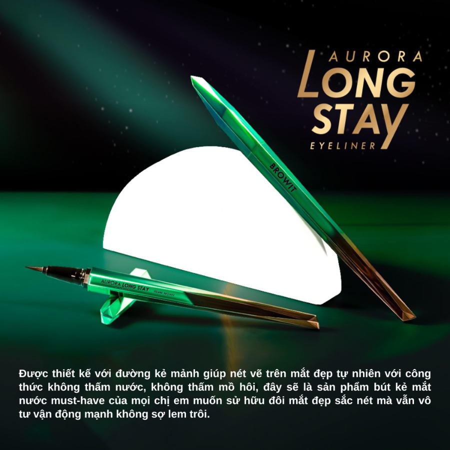 Bút kẻ mắt nước Browit By Nongchat Aurora Long Stay Eyeliner Super Black 0.5g là sản phẩm kẻ mắt nước được thiết kế đặc biệt để tạo ra những đường kẻ mắt mảnh và sắc nét, giúp đôi mắt trở nên cuốn hút mà vẫn giữ được sự tự nhiên. Với công thức không thấm nước, chống mồ hôi và khả năng bền màu suốt 12 giờ, sản phẩm này là sự lựa chọn hoàn hảo cho những ai yêu thích sự tiện dụng, bền lâu nhưng không muốn mất thời gian dặm lại lớp trang điểm.