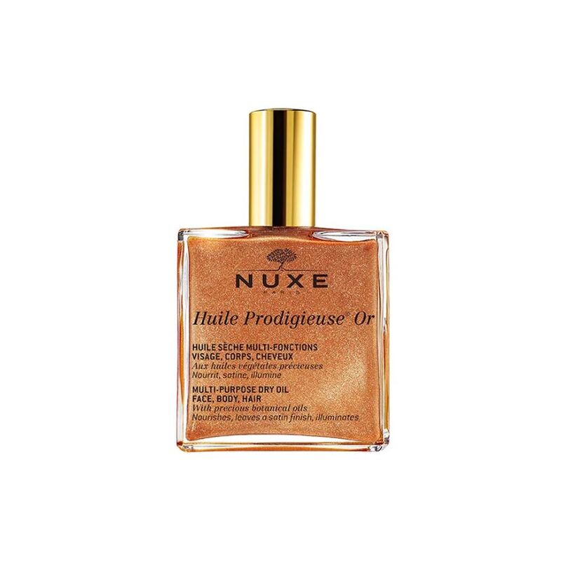 Dầu dưỡng Nuxe Huile Prodigieuse Or Multi: Là dầu khô đa năng với 7 loại dầu thực vật quý, giúp dưỡng ẩm và làm sáng da, tóc chỉ trong một bước. Sản phẩm chứa hạt ngọc trai vàng mang lại ánh sáng lấp lánh, không gây nhờn và có mùi thơm nắng ấm áp. Được đóng gói trong chai xịt 50ml, 100ml tiện lợi, dầu dưỡng Nuxe hiệu quả trong việc cung cấp độ ẩm lâu dài và cải thiện độ mượt mà của da.