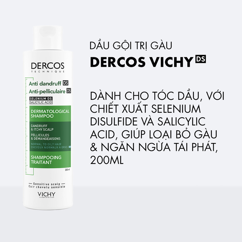 Dầu Gội Vichy Dercos Giảm Gàu Cho Da Đầu Dầu & Ngứa 200ml với công thức chứa phức hợp Anti Sebum giúp dầu gội Vichy có khả năng kiểm soát bóng nhờn hiệu quả. Dercos Oil Control giúp tuyến dầu dưới da được hoạt động chậm lại, cho da đầu luôn sạch sẽ và thoáng mát.