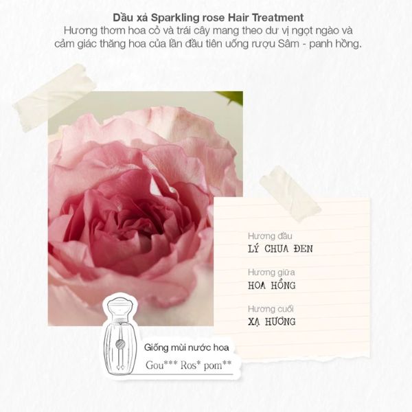 Dầu Xả Jmella In France Sparkling Rose Hair Treatment 500ml là sản phẩm đến từ thương hiệu Jmella. Sản phẩm nổi bật với hương thơm ngọt ngào, dễ chịu của hoa cỏ và trái cây, tựa như cảm giác thăng hoa của lần đầu tiên uống rượu Champagne hồng.