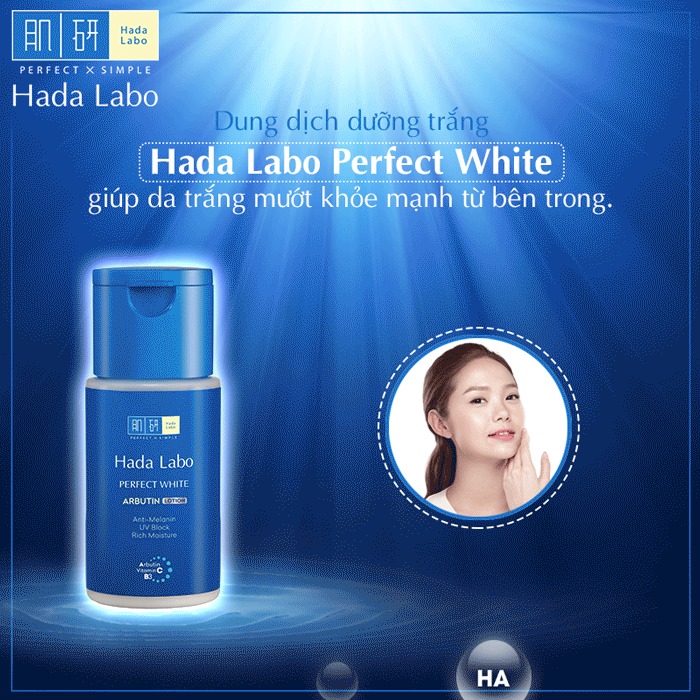 Với mong muốn mang lại cho khách hàng làn da trắng hồng, mịn màng, Hada Labo đã cho ra mắt sản phẩm Dung Dịch Dưỡng Trắng Hada Labo Perfect White Arbutin Lotion 100ml vô cùng thần thánh. Có công dụng dưỡng trắng từ sâu bên trong da, cấp ẩm dồi dào, cho da căng bóng, trắng hồng và tràn đầy sức sống. Với kết cấu mỏng nhẹ, thẩm thấu nhanh vào da, không gây bết dính, có thể sử dụng thường xuyên. Sản phẩm sẽ là người bạn đồng hành không thể thiếu với những nàng muốn sở hữu một làn da trắng sáng tự nhiên.