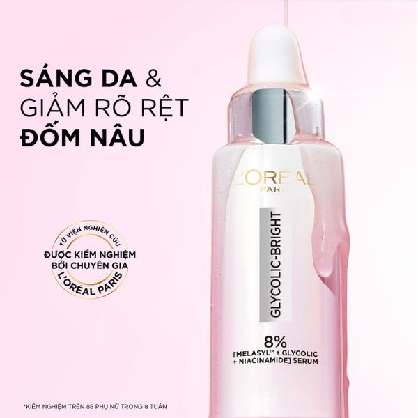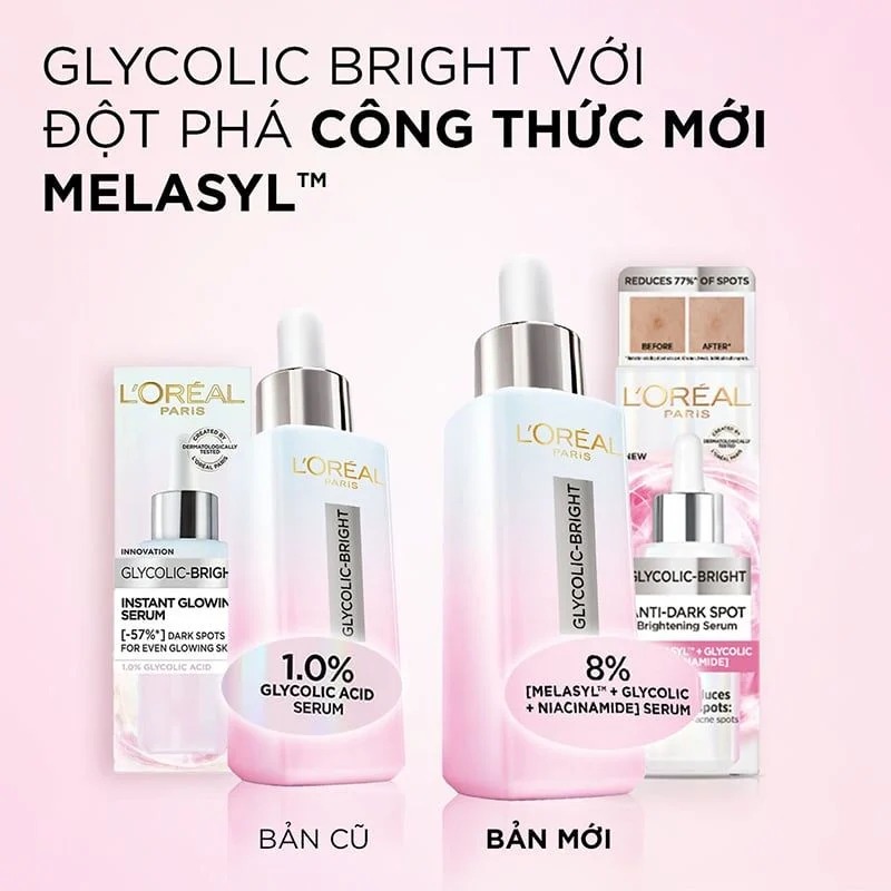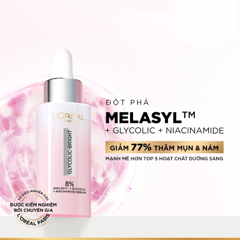 - Phức hợp hoạt chất 8% [Melasyl + Glycolic + Niacinamide]: Hỗ trợ giảm thâm mụn, nám, sạm.