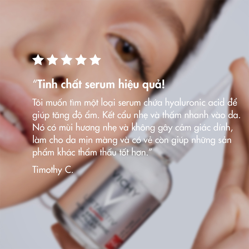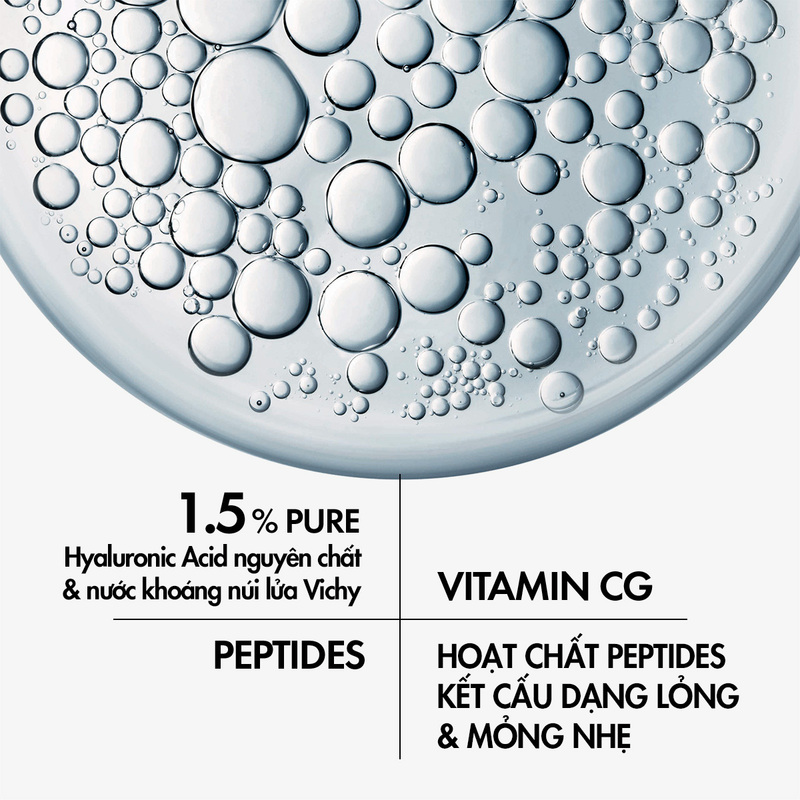 Với thành phần có chứa Hyaluronic Acid, Vitamin Cg, Bio peptide, em tinh chất này của nhà Vichy sở hữu khả năng kháng khuẩn mạnh mẽ, bảo vệ da tối ưu khỏi tác động tiêu cực từ môi trường bên ngoài, đồng thời làm săn chắc da, cải thiện hiệu quả tình trạng nếp nhăn, hỗ trợ dưỡng sáng da hiệu quả.