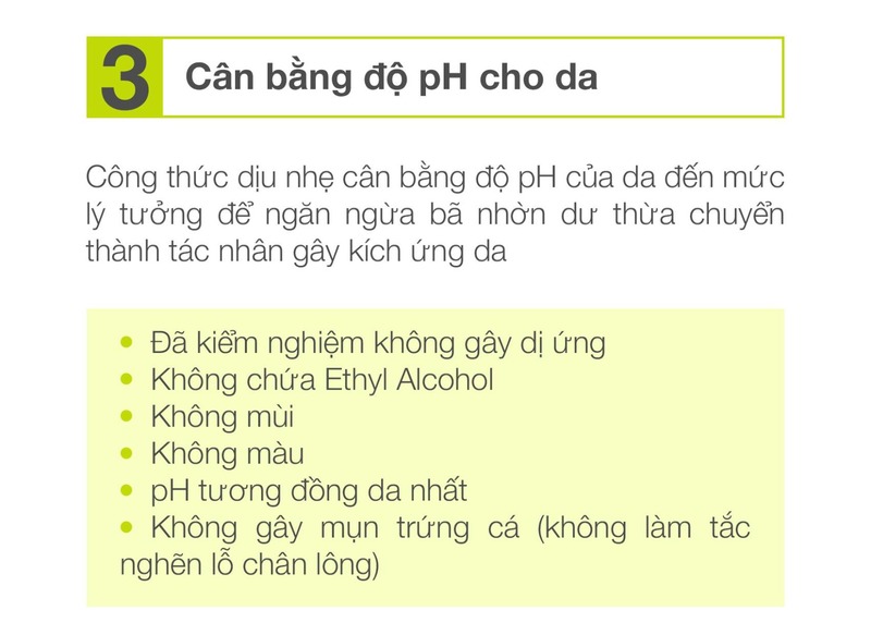 Cân bằng độ pH cho da: Công thức dịu nhẹ giúp ngăn ngừa bã nhờn dư thừa chuyển hoá thành tác nhân gây kích ứng da.