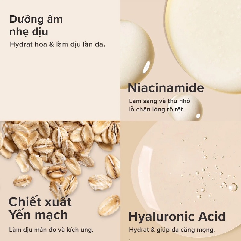 Chiết xuất yến mạch: có tác dụng làm dịu da, giảm kích ứng, nhất là những nốt mụn đỏ.