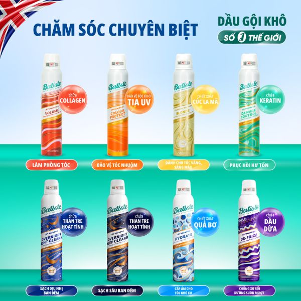 Hiện tại, Cocolux đang phân phối các dòng dầu gội khô Batiste mới với các phân loại dưới đây: