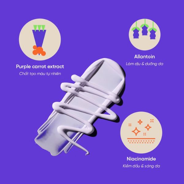 Beplain Sunmuse Tone Up & Correcting Sunscreen cũng gây ấn tượng với thành phần chiết xuất cà rốt tím giàu chất oxy hoá và dưỡng chất, giúp nâng tông, dưỡng ẩm và chống oxy hoá.