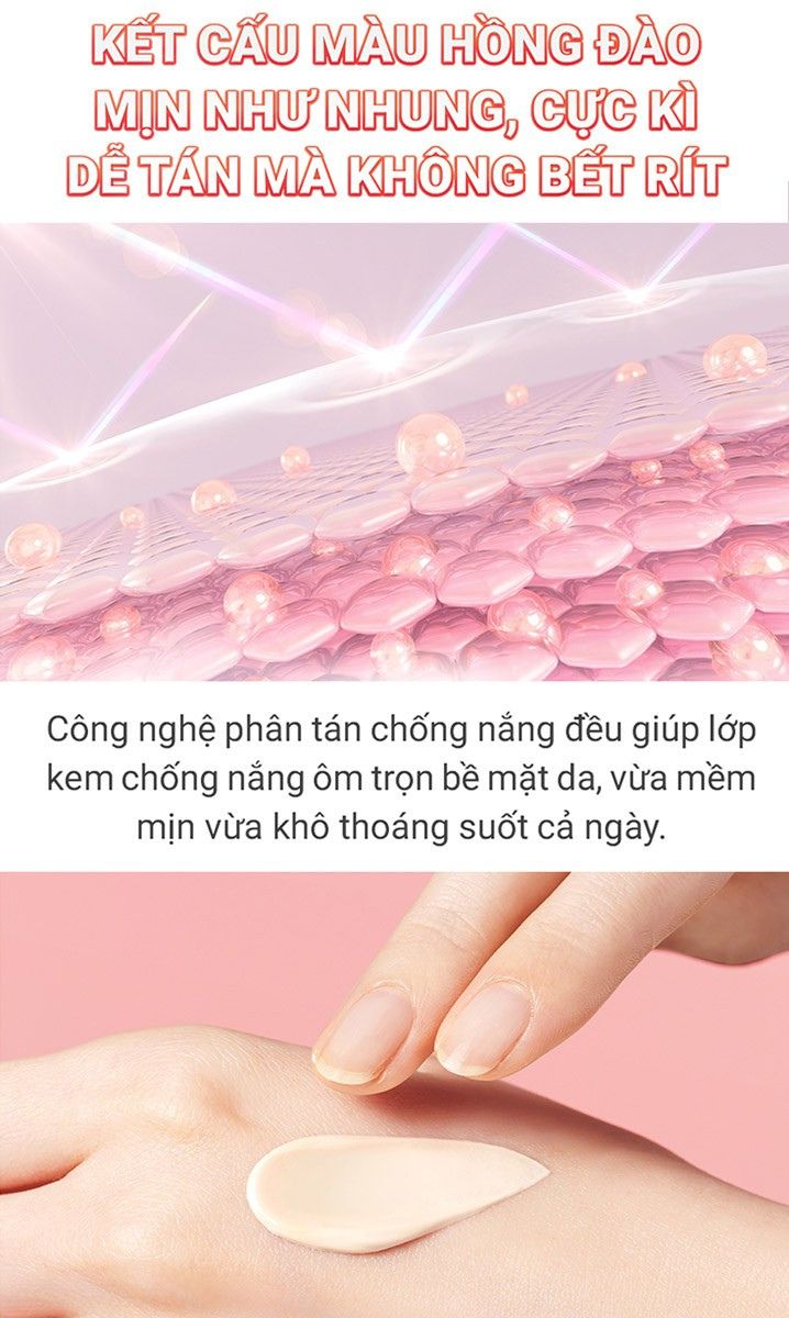 Khi apply, kem chống nắng đem lại hiệu ứng nâng tông nhẹ nhàng, tự nhiên, giúp da thêm đều màu, tươi tắn.