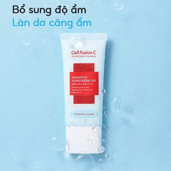 Kem Chống Nắng Cell Fusion C Aquatica Sunscreen 100 SPF50+PA++++ Cấp Ẩm Dịu Da vừa có khả năng chống nắng vừa có khả năng đem lại làn da căng bóng, mịn màng, không bị khô da.