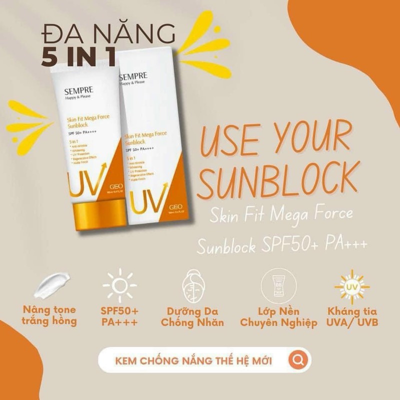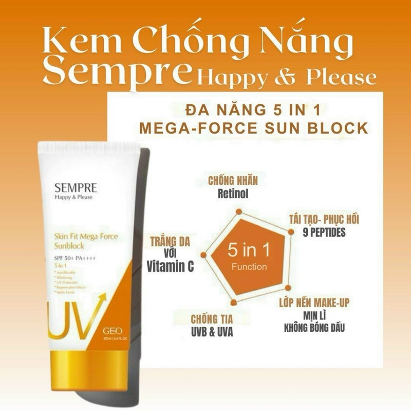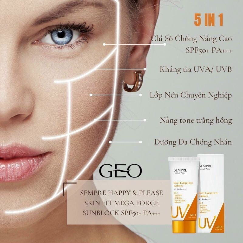 Kem Chống Nắng Geo Sempre Happy & Please 5in1 SPF 50+ PA++++ là sản phẩm bảo vệ da mới đến từ nhà Geo Lamy.