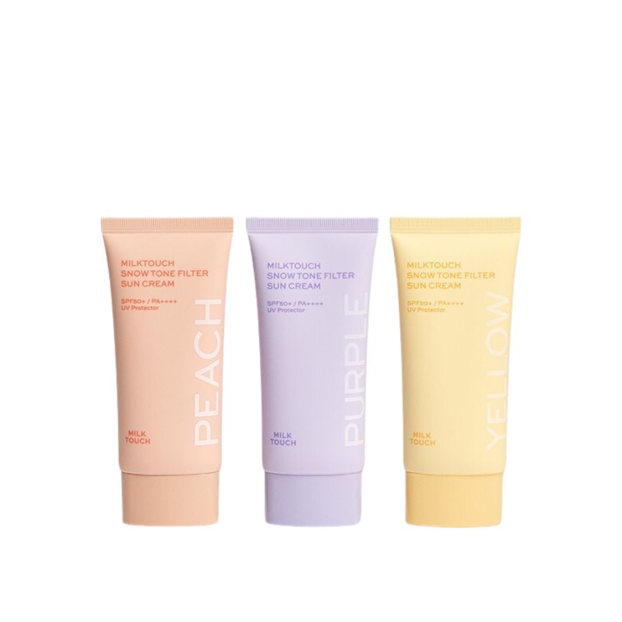 Hiện kem chống nắng Milk Touch Snow Tone Filter Sun Cream đang được phân phối tại Cocolux với ba phiên bản khác nhau để phù hợp với từng loại da:
