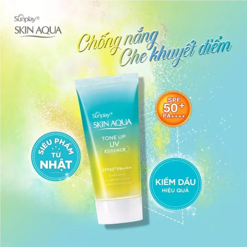 Kem Chống Nắng Sunplay Skin Aqua Tone Up UV Essence Mint Green Hiệu Chỉnh Tông Da 50g là một trong bốn dòng kem chống nắng hiệu chỉnh sắc da của Sunplay dành riêng cho da nhạy cảm, mẩn đỏ và da mụn.