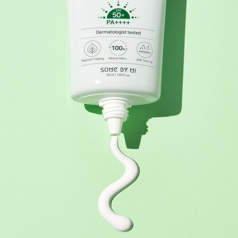 Kem chống nắng Some By Mi có kết cấu dạng kem lỏng nhẹ, có khả thẩm thấu nhanh vào da, đem đến lớp nền căng bóng, ẩm mượt. Khi apply, da nhanh chóng cảm nhận được sự mát dịu, thông thoáng, không nhờn rít hay bít tắc lỗ chân lông. Sản phẩm để lại lớp nền mỏng nhẹ, mềm mịn, nâng tông nhẹ nhàng, tự nhiên. Kem chống nắng không chứa 20 thành phần có hại, làm kích ứng da, vì thế phù hợp với mọi loại da, đặc biệt là da dầu, hỗn hợp thiên dầu, da mụn, da nhạy cảm.