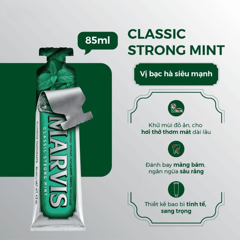 Kem Đánh Răng MARVIS Classic Strong Mint - Màu Xanh Ngọc