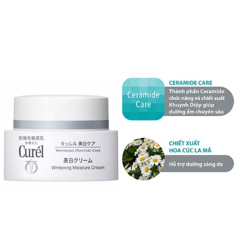 Curél Whitening Moisture Care có khả năng dưỡng ẩm cho da trong suốt 24 giờ, giúp da trở nên mềm mịn, căng tràn sức sống. Ngoài ra, sản phẩm còn giúp làm mờ nám, tàn nhang, nếp nhăn, thu nhỏ lỗ chân lông, giúp da bạn thách thức thời gian và luôn tươi trẻ.