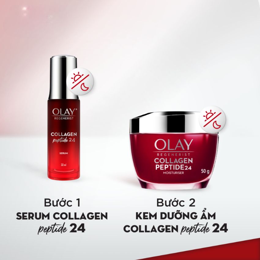 Kem dưỡng ẩm Olay Collagen Peptide 24 là giải pháp lý tưởng để cải thiện các dấu hiệu lão hóa như nếp nhăn, đốm nâu, và lỗ chân lông to. Sản phẩm kết hợp Collagen Peptide và Niacinamide, giúp thẩm thấu sâu vào da, bổ sung collagen, làm da săn chắc và tăng độ đàn hồi lên đến 40%.