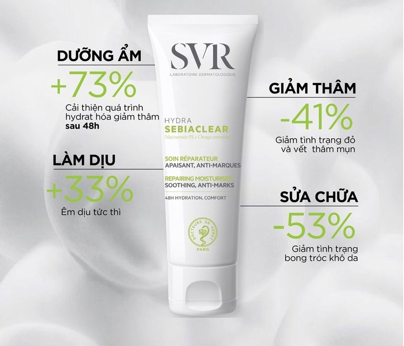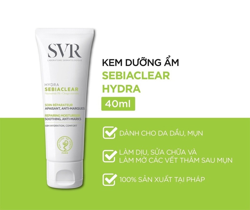 Những làn da đang trải qua quá trình điều trị mụn trứng cá rất dễ bị khô và yếu đi. Những nốt mụn này thường có đặc điểm sưng viêm, có dạng đốm đỏ hoặc trắng và dễ để lại sẹo, thâm trên da. Do đó, cần thiết phải có một loại kem dưỡng ẩm phù hợp để mang lại sự thoải mái và dưỡng ẩm hàng ngày cho da. Không chỉ có vậy, sản phẩm này còn phải có khả năng chống viêm và các dấu hiệu của mụn còn sót lại, đồng thời cung cấp độ ẩm cho làn da đang bị khô nghiêm trọng. Nếu bạn đang tìm kiếm một sản phẩm như vậy thì Kem Dưỡng Ẩm SVR Dành Cho Da Dầu Mụn 40ml SEBIACLEAR Hydra chính là sự lựa chọn hoàn hảo.