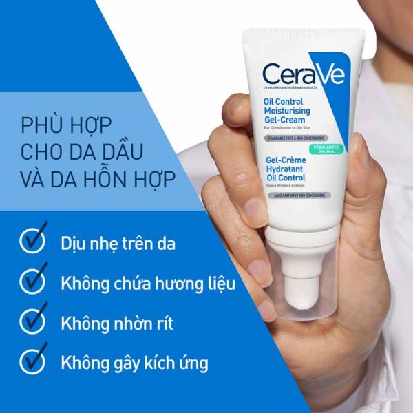 Cerave Oil Control Moisturising Gel-Cream hội tụ 3 tiêu chí cần có của một kem dưỡng ẩm dành cho da dầu mụn, bao gồm: kiềm dầu, cấp ẩm và mỏng nhẹ. Sản phẩm còn có kết cấu gel-cream mỏng nhẹ, mềm mịn, dễ tán đều và thẩm thấu trên da nhanh chóng, không gây nhờn dính.