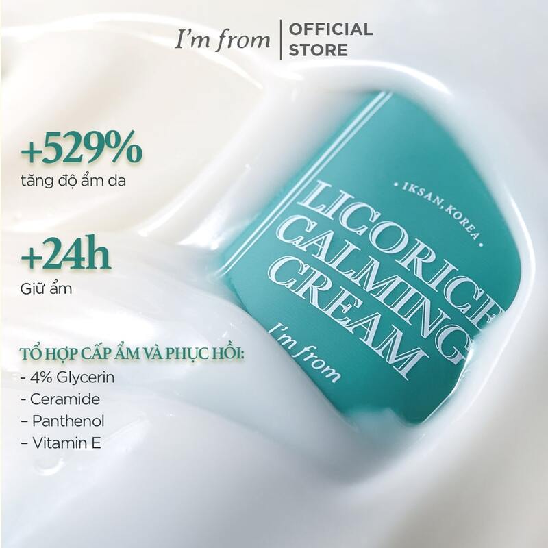Kem dưỡng da I'm From LicoRice Calming 50ml chứa 58% exosome từ cây Cam Thảo, nhằm giải quyết vấn đề tăng sắc tố và làm dịu da nhanh chóng.