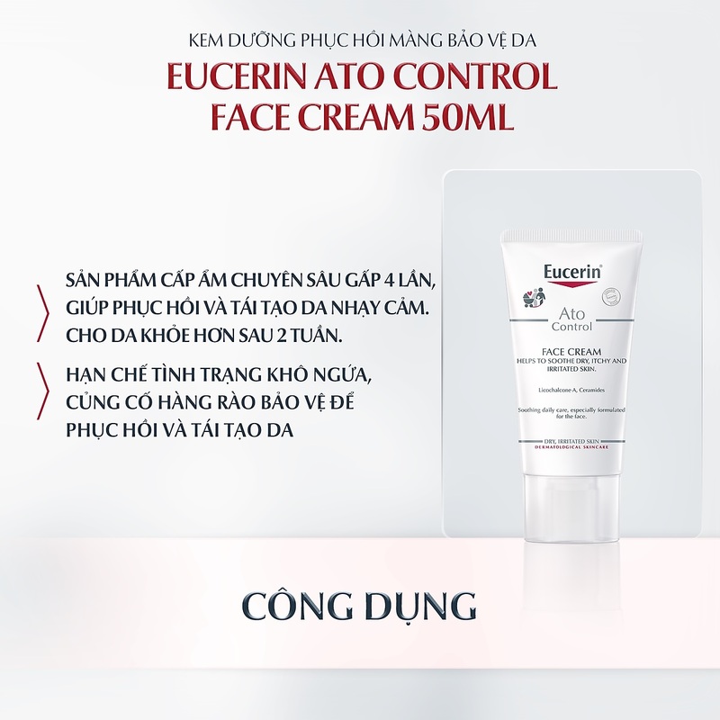 Eucerin là một trong những thương hiệu mỹ phẩm hàng đầu trong việc chăm sóc da nhạy cảm. Các sản phẩm của hãng nổi bật với các thành phần giàu công dụng dưỡng da, đem lại hiệu quả trên da nhanh chóng. Da nhạy cảm là làn da “khó chiều”, luôn cần được cấp ẩm để giảm khô ngứa và cần được bảo vệ khỏi các tác nhân gây hại bên ngoài môi trường. Kem dưỡng eucerin cho viêm da cơ địa 50ml là sản phẩm mà các nàng đang sở hữu da nhạy cảm nên có.