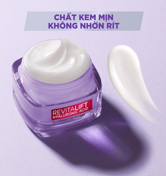 L'Oreal Paris Revitalift Hyaluronic Acid Plumping Cream Day có kết cấu dạng kem trắng mịn, có khả năng thẩm thấu nhanh vào da, không gây nhờn rít, không làm bít tắc lỗ chân lông, không để lại vệt trắng trên da. Sản phẩm đã qua kiểm nghiệm, cho hiệu quả làm sáng da và dưỡng ẩm cho da tối ưu. Kem dưỡng L'Oreal phù hợp sử dụng trên mọi làn da, đặc biệt là da khô căng, thô ráp, sần sùi, thiếu sức sống, da đang gặp các dấu hiệu lão hóa.