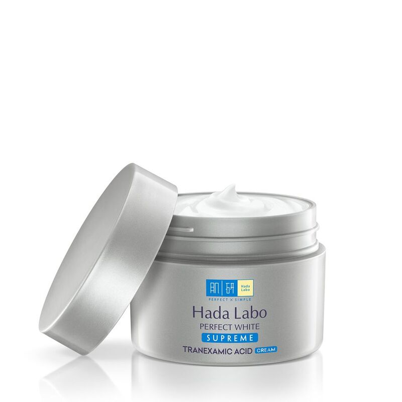 Kem Dưỡng Trắng Hada Labo Perfect White Cream 50g là một trong những sản phẩm kem dưỡng chuyên sâu của hãng chứa thành phần Tranexamic Acid và phức hợp Platinum (Platinum, Vitamin E, C) ức chế sự hình thành của các sắc tố melanin, làm mờ vết thâm, đốm nâu, thâm sạm, chống oxy hoá và làm đều màu da.