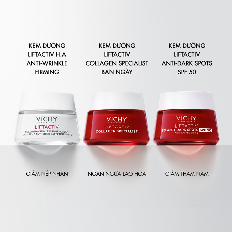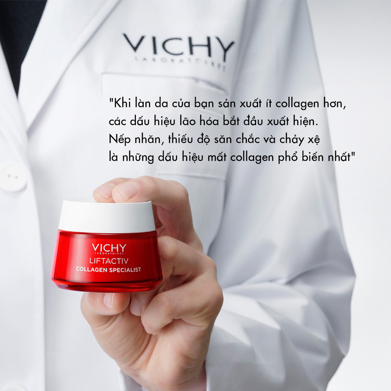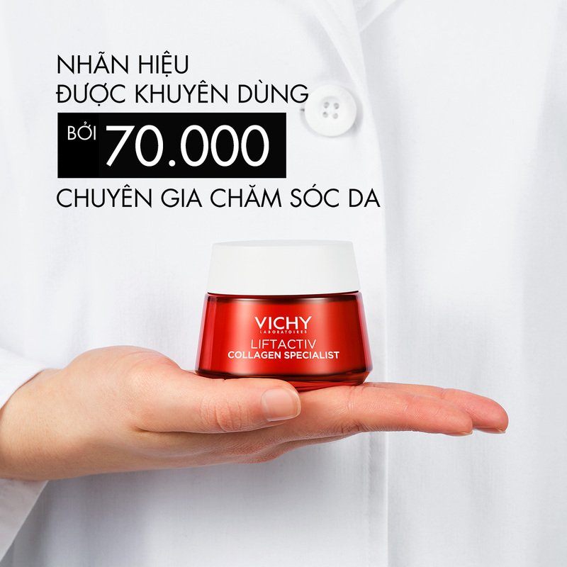 Vichy là thương hiệu dược mỹ phẩm hàng đầu nước Pháp có lịch sử hơn 80 năm. Đặc trưng của thương hiệu là nguyên liệu nước khoáng Vichy mang trong mình 15 loại khoáng chất quý hiếm. Tất cả các dòng sản phẩm của Vichy được kiểm định nghiêm ngặt bởi Viện nghiên cứu Vichy để đảm bảo độ an toàn và hiệu quả. Trong đó không thể không kể đến dòng Kem Dưỡng Collagen Liftactiv Collagen Specialist Chuyên Biệt 50ml.