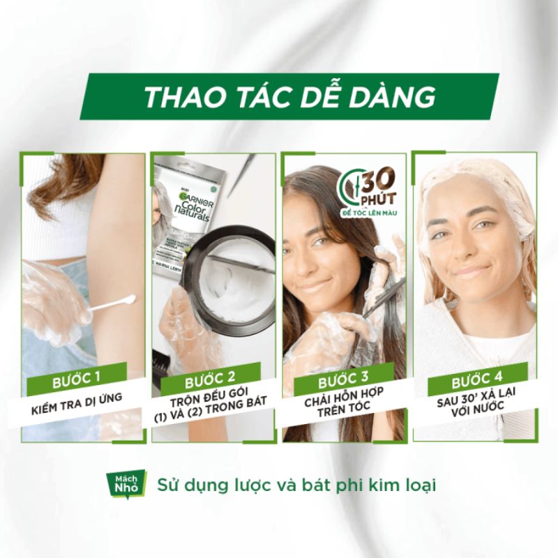 Kem nhuộm tóc Garnier Color Naturals Crème Riche nổi bật với công nghệ Color Lock tiên tiến, sản phẩm giúp duy trì màu tóc lâu phai, đồng thời nuôi dưỡng tóc mềm mượt nhờ sự kết hợp của ba loại dầu tự nhiên: dầu ô liu, dầu quả bơ và dầu hạt hạnh nhân. Đây là sự lựa chọn lý tưởng cho những ai mong muốn thay đổi màu tóc một cách an toàn và hiệu quả tại nhà.