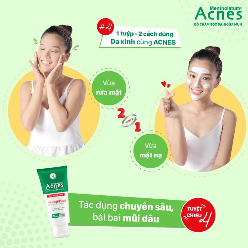 Kem rửa mặt và mặt nạ ngăn ngừa mụn đầu đen Acnes Anti-Blackhead 100g là một trong số những sản phẩm bán chạy của hãng. Với công dụng 2in1, vừa có thể dùng như sữa rửa mặt hằng ngày, vừa có thể dùng để làm mặt nạ loại bỏ mụn đầu đen nên vô cùng tiện lợi, xứng đáng là ngôi sao sáng của hãng.