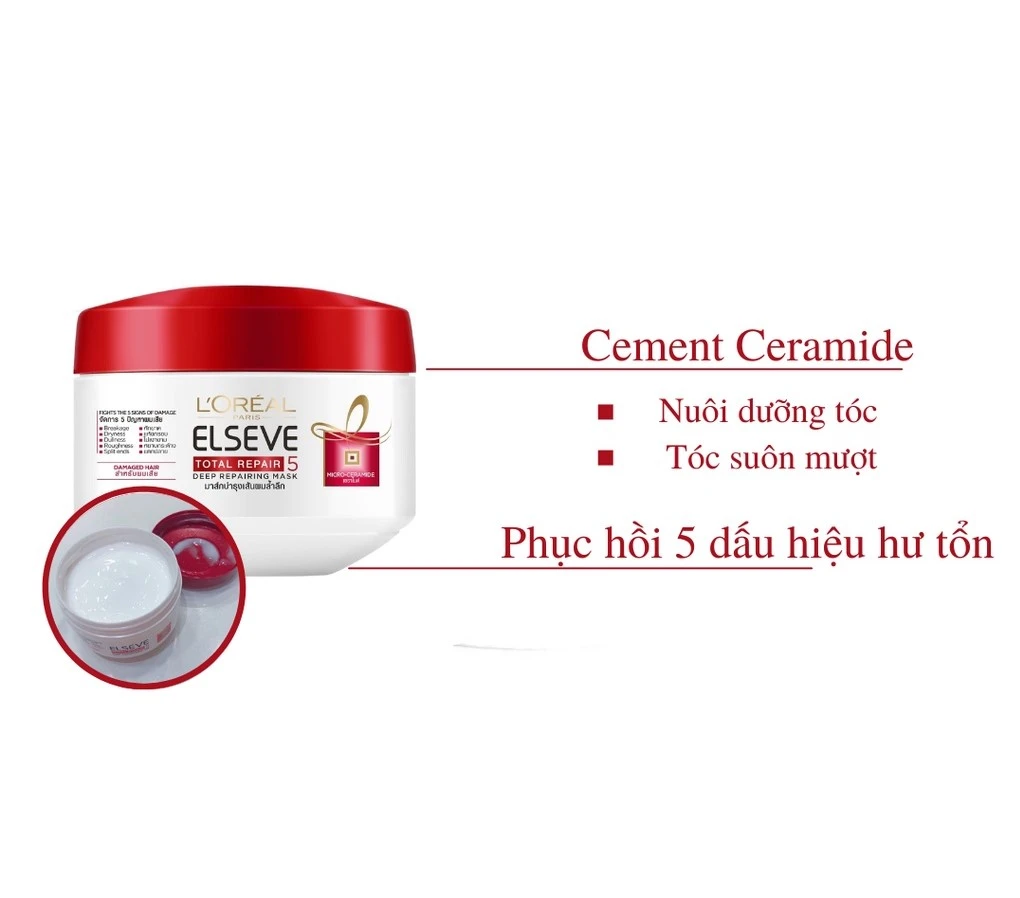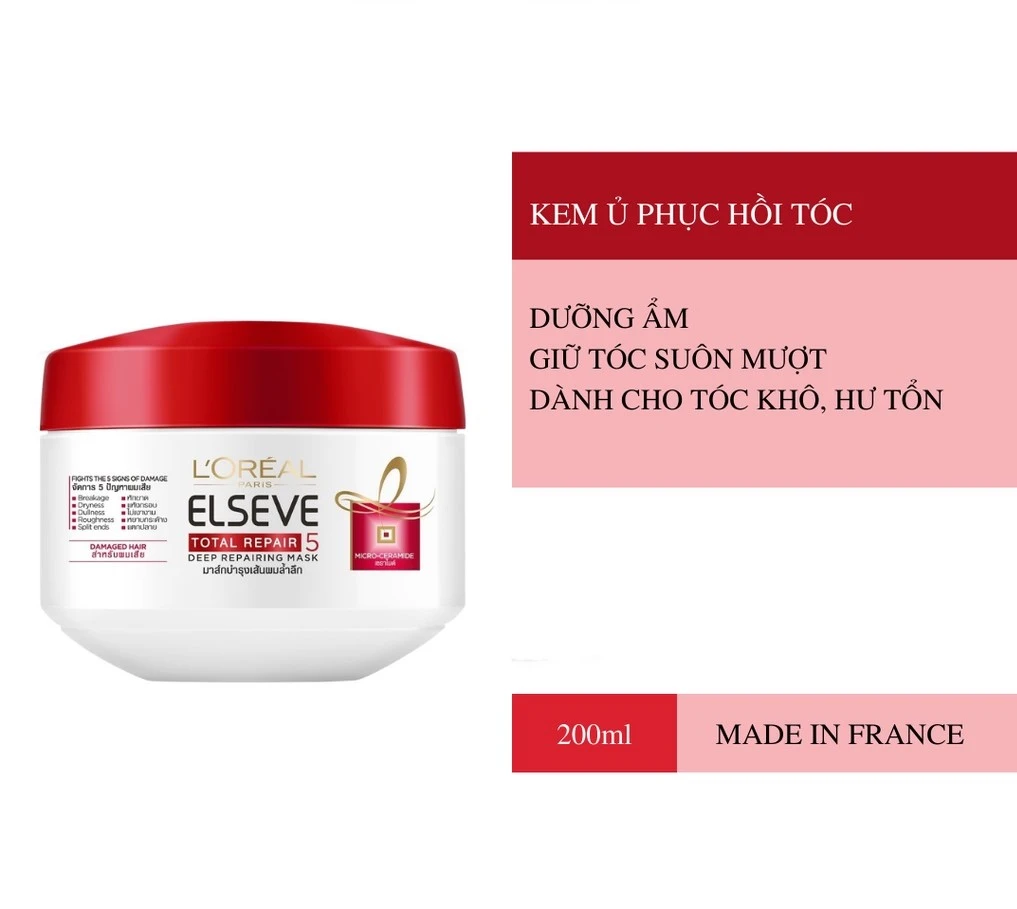 Kem ủ phục hồi tóc Loreal Total Repair 5 200ml được nhiều cô nàng ưa chuộng trong hành trình chăm sóc mái tóc Việt. Người ta vẫn thường hay nói rằng “Cái răng, cái tóc là gốc con người”, nên mái tóc luôn được chị em phụ nữ nâng niu và chăm chút. Tuy nhiên, không tránh khỏi được việc tiếp xúc với khói bụi, ô nhiễm, ánh nắng và các hóa chất độc hại khi đi làm tóc khiến cho mái tóc càng ngày càng khô xơ, hư tổn, chẻ ngọn… Vì vậy, việc sử dụng kem ủ phục hồi tóc như một “cứu tinh” dành cho mái tóc.