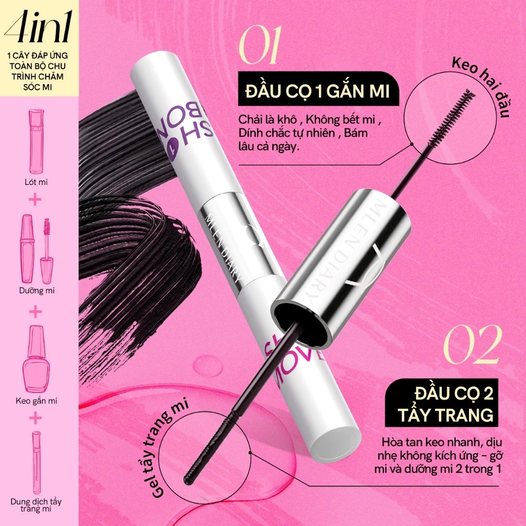Keo Dán Mi Mlen Diary 2 Đầu 4in1 Plus là trợ thủ đắc lực cho đôi mắt thêm cuốn hút. Với thiết kế thông minh 2 đầu tiện lợi và công thức keo bền chắc, sản phẩm giúp gắn mi giả nhanh chóng, giữ nếp cong lâu dài, tự nhiên và an toàn cho mắt.