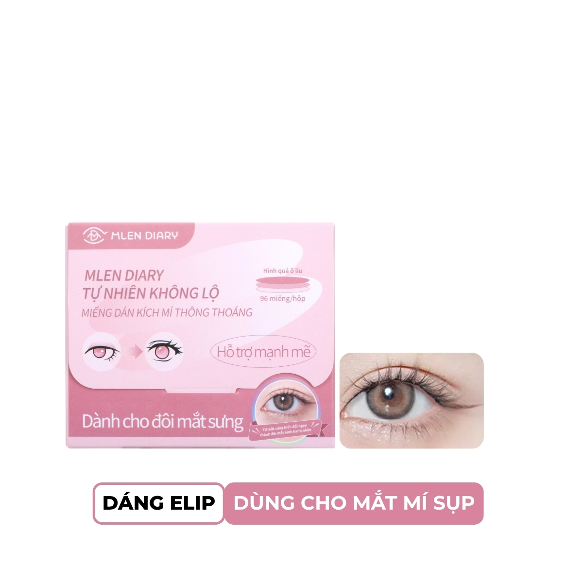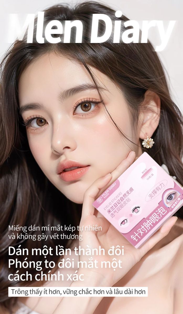 Kích Mí Mlen Diary là trợ thủ đắc lực giúp bạn sở hữu đôi mắt to tròn, có chiều sâu và nếp mí rõ ràng chỉ trong vài giây. Với chất liệu film trong suốt mỏng nhẹ và keo dính bền chắc, sản phẩm giúp tạo nếp mí tự nhiên mà không để lộ dấu vết trang điểm.