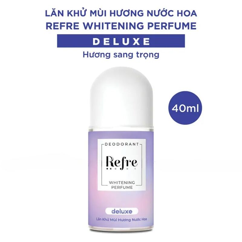 - Lăn khử mùi Refre Whitening Perfume hương sang trọng 40ml: Một hương thơm sang trọng và quý phái với cam bergamot, cam citrus, hoa hồng, hoa violet, hoa cam, hoắc hương, làm nổi bật phong cách, đẳng cấp.