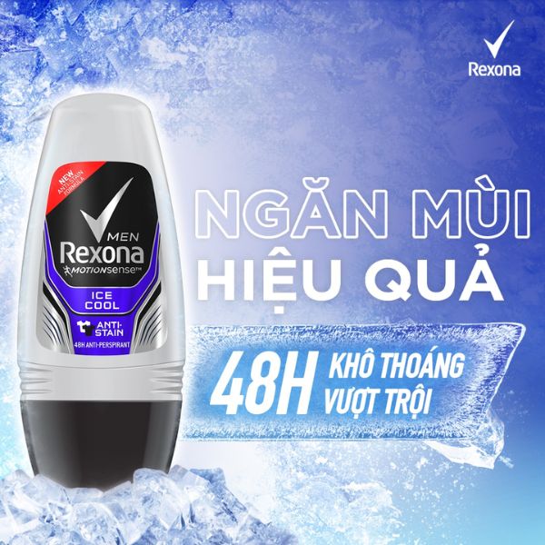 Lăn Khử Mùi Rexona Men Ice Cool 50ml là dòng sản phẩm ngăn mùi dành cho nam được nhiều người yêu thích. Nhờ công nghệ MotionSense, giúp giảm tiết mồ hôi và ngăn mùi hôi hiệu quả, giúp bạn thơm mát trong suốt 48h. Ngoài ra, Rexona Men là phiên bản đa chức năng với 3 tác động: Ngăn mồ hôi và mùi cơ thể - Loại bỏ vi khuẩn (đặc biệt khi vận động/ chơi thể thao) - Ngăn vệt ố vàng trên áo.