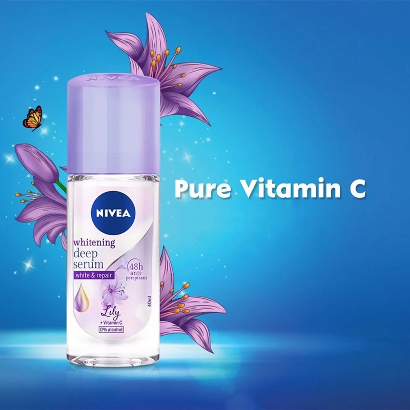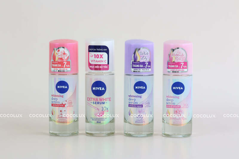 - Lăn ngăn mùi Nivea serum trắng mịn 40ml: x10 tinh chất vitamin C giúp dưỡng trắng chuyên sâu, cải thiện vùng da sạm đen, xỉn màu và ngăn mùi lên đến 48 giờ.