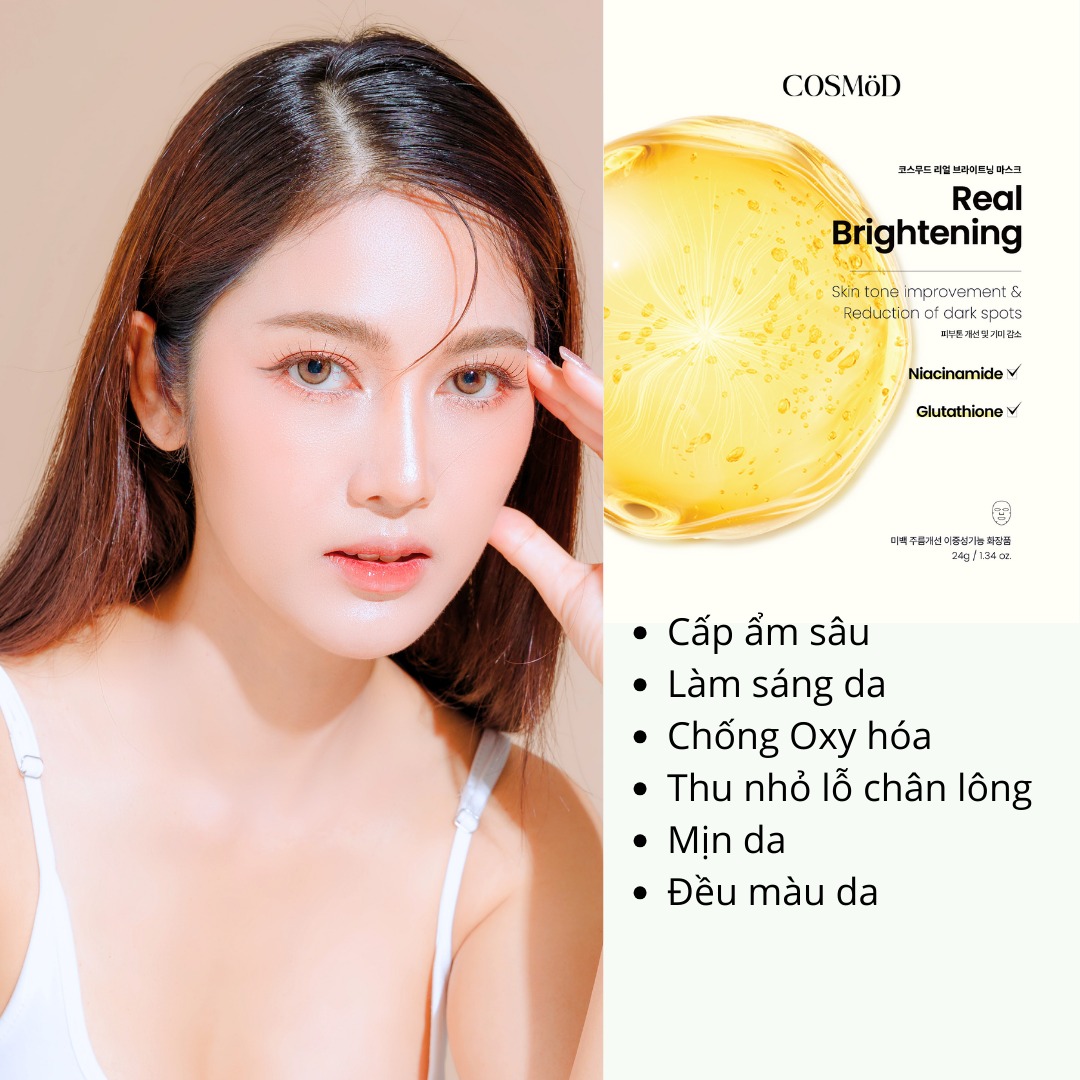 - Mặt Nạ Cosmod Real Brightening Niacinamide Glutathione - Vàng