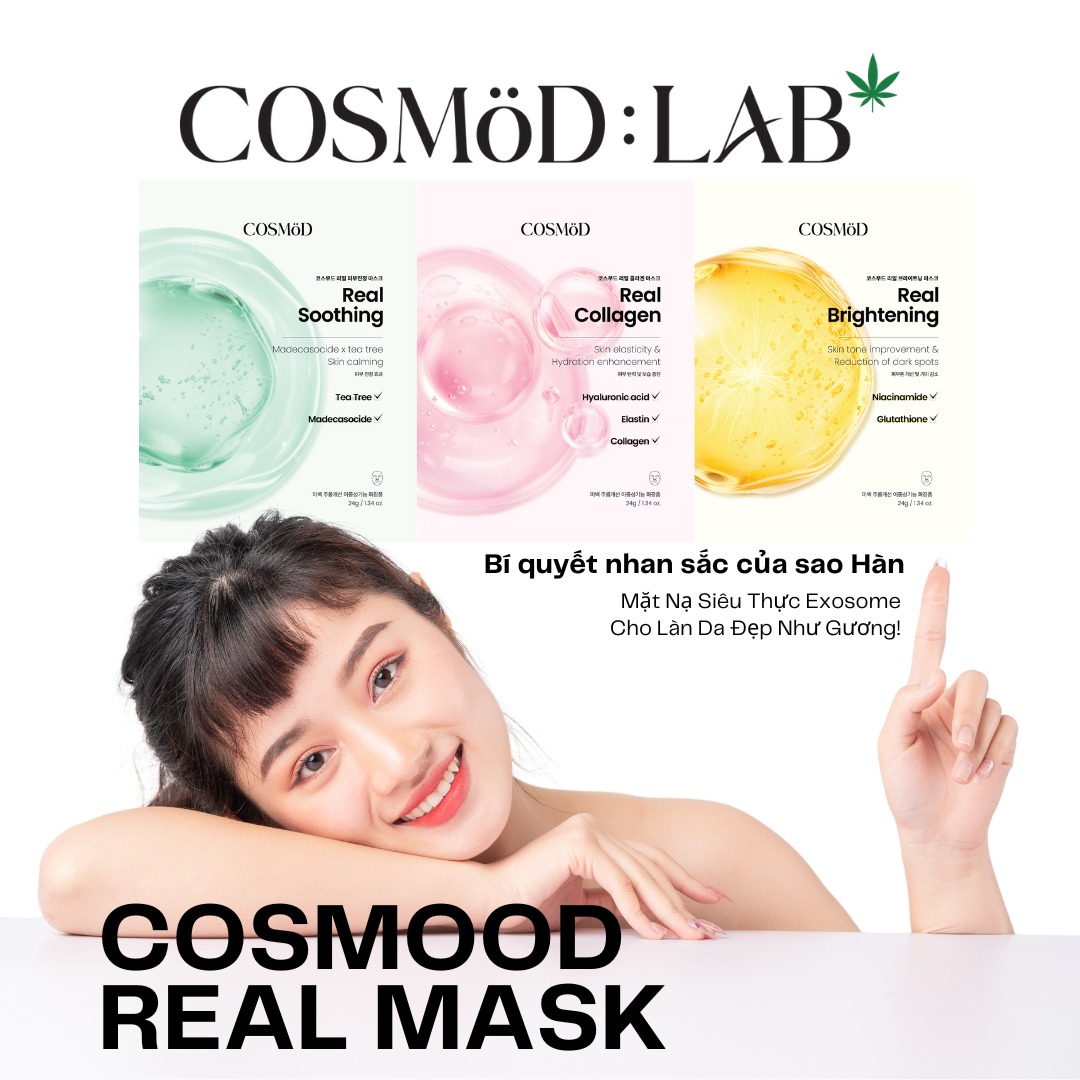 Mặt nạ dưỡng da Cosmood Lab Real Mask là sản phẩm chăm sóc da cao cấp đến từ thương hiệu nổi tiếng COSMOOD:LAB của Hàn Quốc. Thương hiệu này đã ghi dấu ấn mạnh mẽ trên thị trường với các dòng sản phẩm chăm sóc da và tóc, được yêu thích nhờ chất lượng vượt trội. Mặt nạ Cosmood Lab Real Mask là sản phẩm mới ra mắt, với ba dòng mặt nạ đặc biệt được chiết xuất từ thiên nhiên, mang lại hiệu quả dưỡng da tối ưu, bao gồm các công dụng dưỡng trắng, trị mụn và cung cấp độ ẩm, giúp làn da luôn khỏe mạnh và căng bóng.